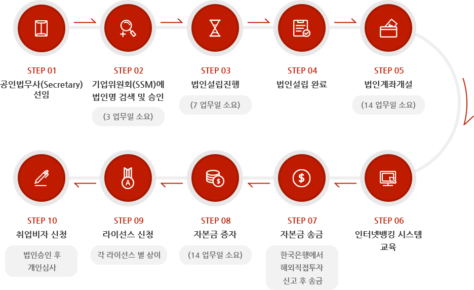 - 법인명 결정 : 법인명을 정하고, 기업 등록국(SSM)에 사전 승인을 받아야 해요.