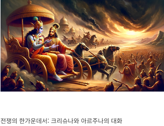 - 도덕적 딜레마 : 아르주나는 전쟁에서 친척과 친구를 상대로 싸워야 하는 상황에 놓이게 되는데, 이로 인해 고뇌하게 돼요. 이는 우리가 직면하는 도덕적 갈등을 상징적으로 나타내고 있어요.