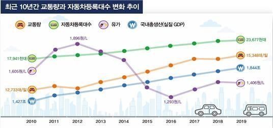 2010년부터 2019년까지의 교통량 변화 추세를 살펴보면, 차량 소유가 증가함에 따라 교통량도 지속적으로 증가하는 경향을 보인다. 특히, 대도시 지역에서는 교통 혼잡이 심화되고 있으며, 이는 대중교통 이용률 감소와도 관련이 있다.