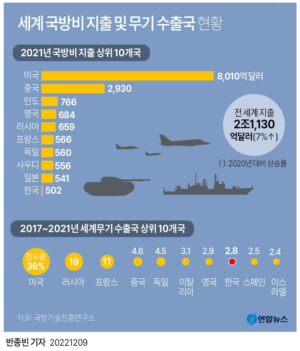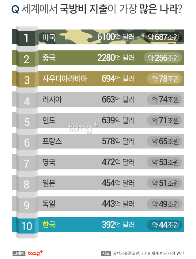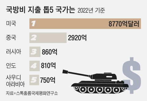 [3] 조선일보 - 미국 국방비, 중국의 3배로 독보적 1위… 한국은 몇위? (https://www.chosun.com/economy/weeklybiz/2023/08/17/P3DHTIMXA5HRPOS5XK3JBJSB7M/)